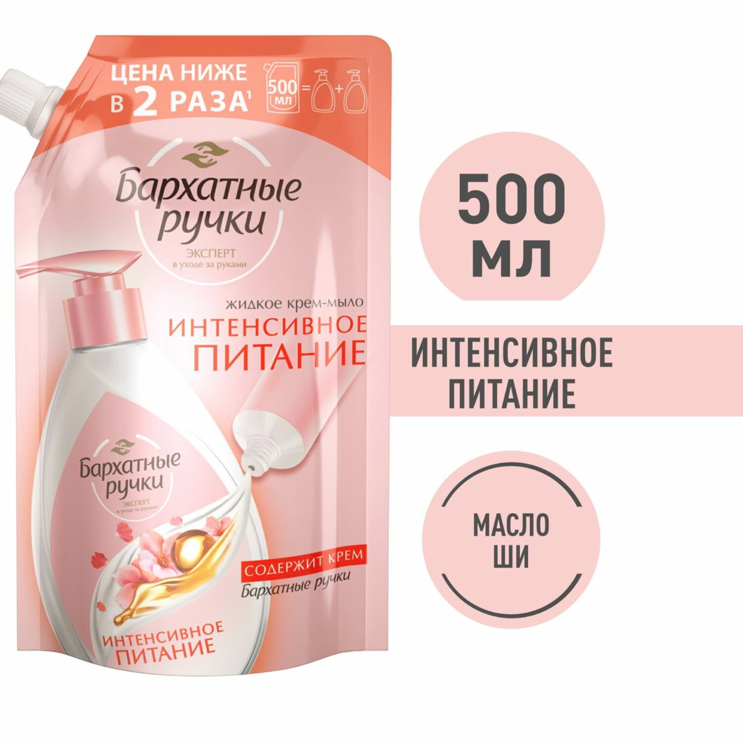 Крем-мыло жидкое Бархатные Ручки Интенсивное питание 500мл Аэрозоль Новомосковск