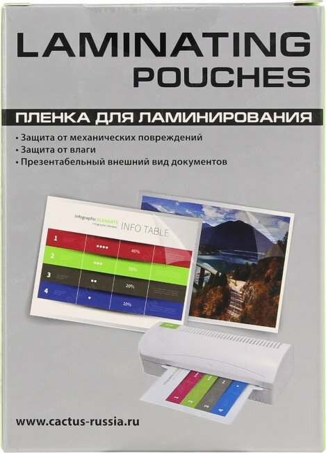 | Прочие особенности | Пленка для ламинирования глянцевая. |