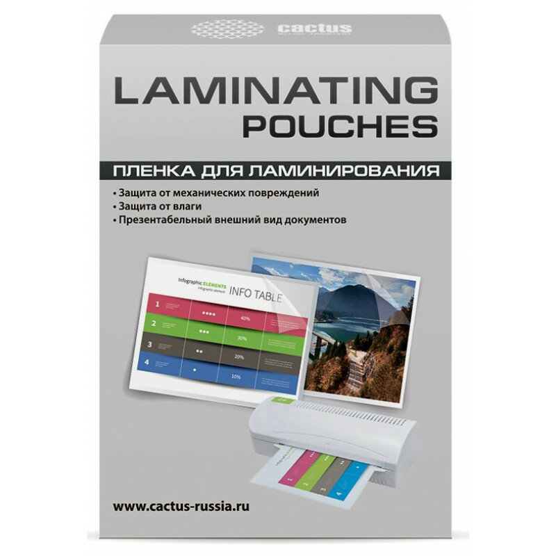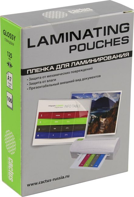 Пленка для ламинирования Cactus 125мкм A7 (100шт) глянцевая 75x105мм