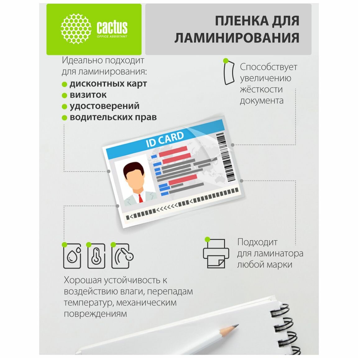 | Прочие особенности | Пленка для ламинирования глянцевая |