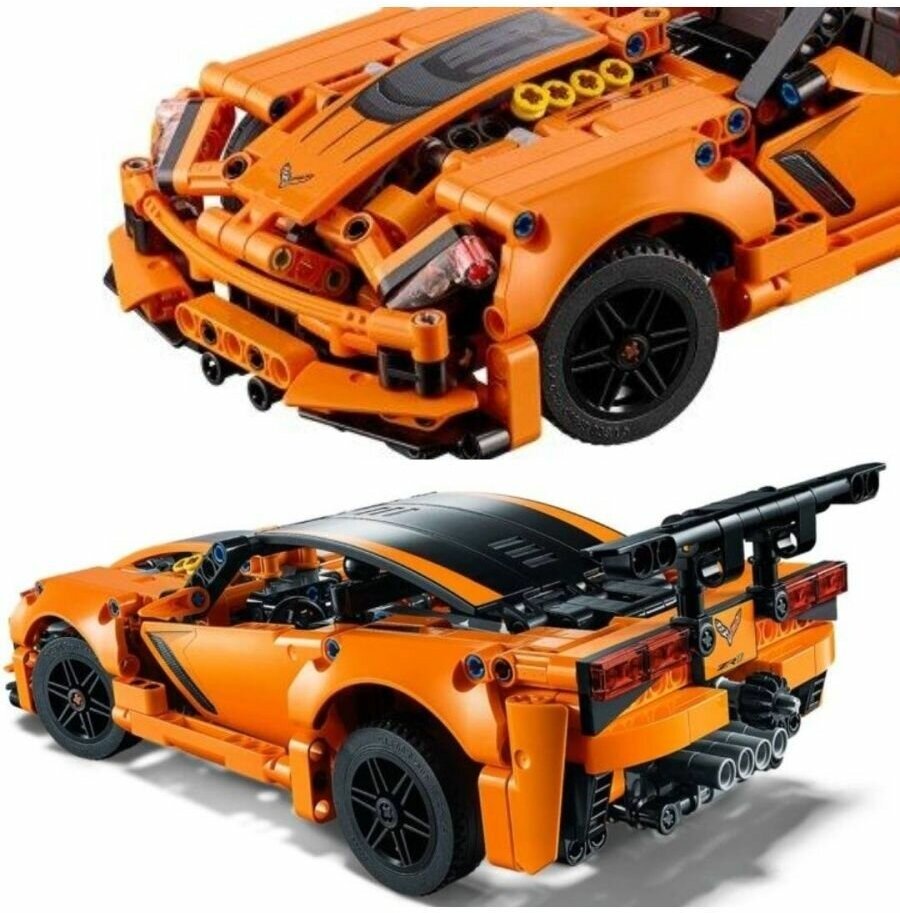 Познакомься с инновационным дизайном удивительного автомобиля Chevrolet Corvette ZR1 LEGO® Technic, разработанного совместно с Corvette. Corvette представляет собой точную копию культового суперскоростного и сверхмощного суперкара и отличается аутентичным корпусом, окрашенным в оранжевый и черный цвета, а также целым рядом характерных особенностей, таких как большое заднее крыло, 4 хвостовых трубы и черные обода колес с низкопрофильными шинами. Используй рулевое управление, чтобы заставить модель двигаться и активировать видимый двигатель V8 с движущимися поршнями. Переделай эту эксклюзивную модель 2 в 1 в мощный Хот-род.Воссоздай шедевры инженерного искусства с помощью этого набора Chevrolet Corvette ZR1 LEGO® Technic (42093). Разработанная в сотрудничестве с компанией Corvette, эта модель является воплощением концепции легендарного суперкара. Она выполнена в аутентичной оранжево-черной цветовой гамме и оснащена черными дисками со спицами и низкопрофильными шинами, большим задним спойлером и четырьмя выхлопными трубами. Кроме того, эта копия автомобиля Chevrolet Corvette ZR1 оснащена работающим рулевым колесом и детально проработанным двигателем V8 с подвижными поршнями. Эту потрясающую модель 2 в 1 можно перестроить в копию Гоночного автомобиля. Эта эксклюзивная копия Chevrolet Corvette ZR1 имеет множество реалистичных функций, в том числе большой задний спойлер, четыре выхлопные трубы, черные диски со спицами и низкопрофильными шинами, работающее рулевое колесо и детально проработанный видимый двигатель V8 с подвижными поршнями.