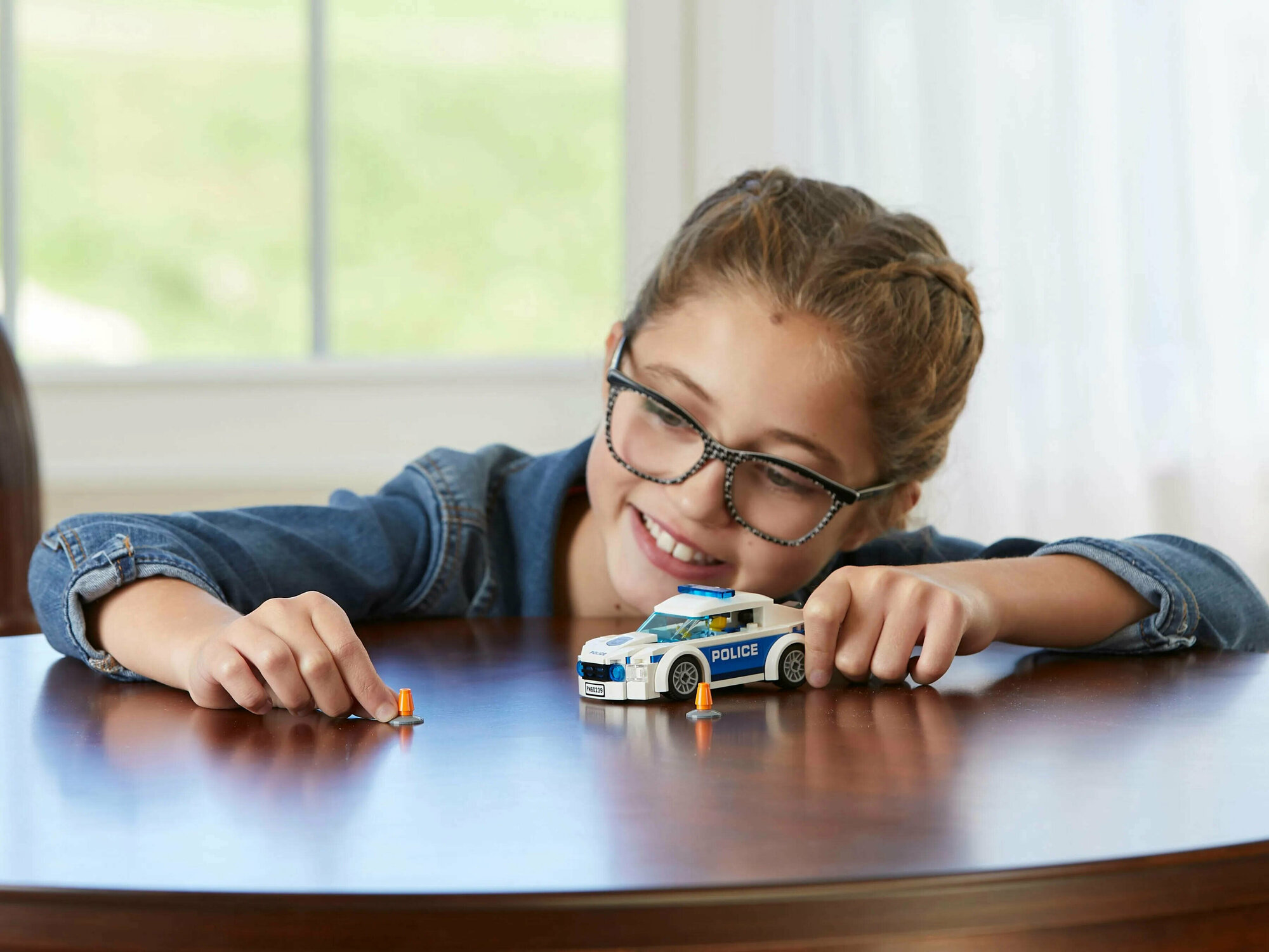 Набор включает в себя модель полицейского автомобиля LEGO® со съемной крышей, кабиной для минифигурки и узнаваемыми декоративными элементами.
