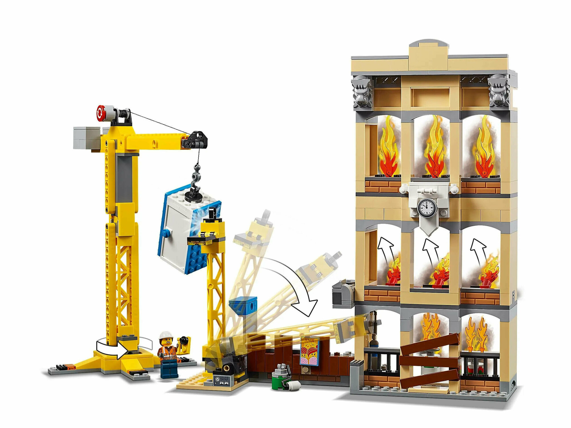 Хватай свое пожарное снаряжение, пришло время спасти жителей, попавших в беду!Строители города LEGO City случайно опрокинули фонарный столб, и на центральной строительной площадке начался пожар. На центральной пожарной станции тревога.Включи фары и сирену на пожарном грузовике с лестницей и спеши на место происшествия. Эй, лучше захватить переносной туалет с помощью крана и переместить его в сторону. Ух ты! Ой, извините! Руби доски при помощи надежного пожарного топора, чтобы Ровер R.O.S.-T3 мог сражаться с огнём.Вытяни лестницу и используй водяной насос, чтобы правиться с огнём на крыше горящего здания. Сможешь ли потушить пожар, прежде чем он выйдет из-под контроля?Это еще один захватывающий день для Экипажа пожарных города!