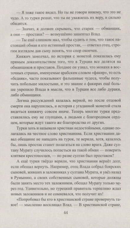 Отличное продолжение истории Влада Цепеша. Герой нравится и не нравится одновременно, он беспринципен и жесток, но им движет месть и все его действия становится логичными, их можно как-то объяснить, по крайней мере пока. С удовольствием продолжу читать его историю. Качество у издания хорошее, книга прошита, текст руки не пачкает, правда немного мелкий шрифт. Покупкой остался очень доволен, рекомендую.