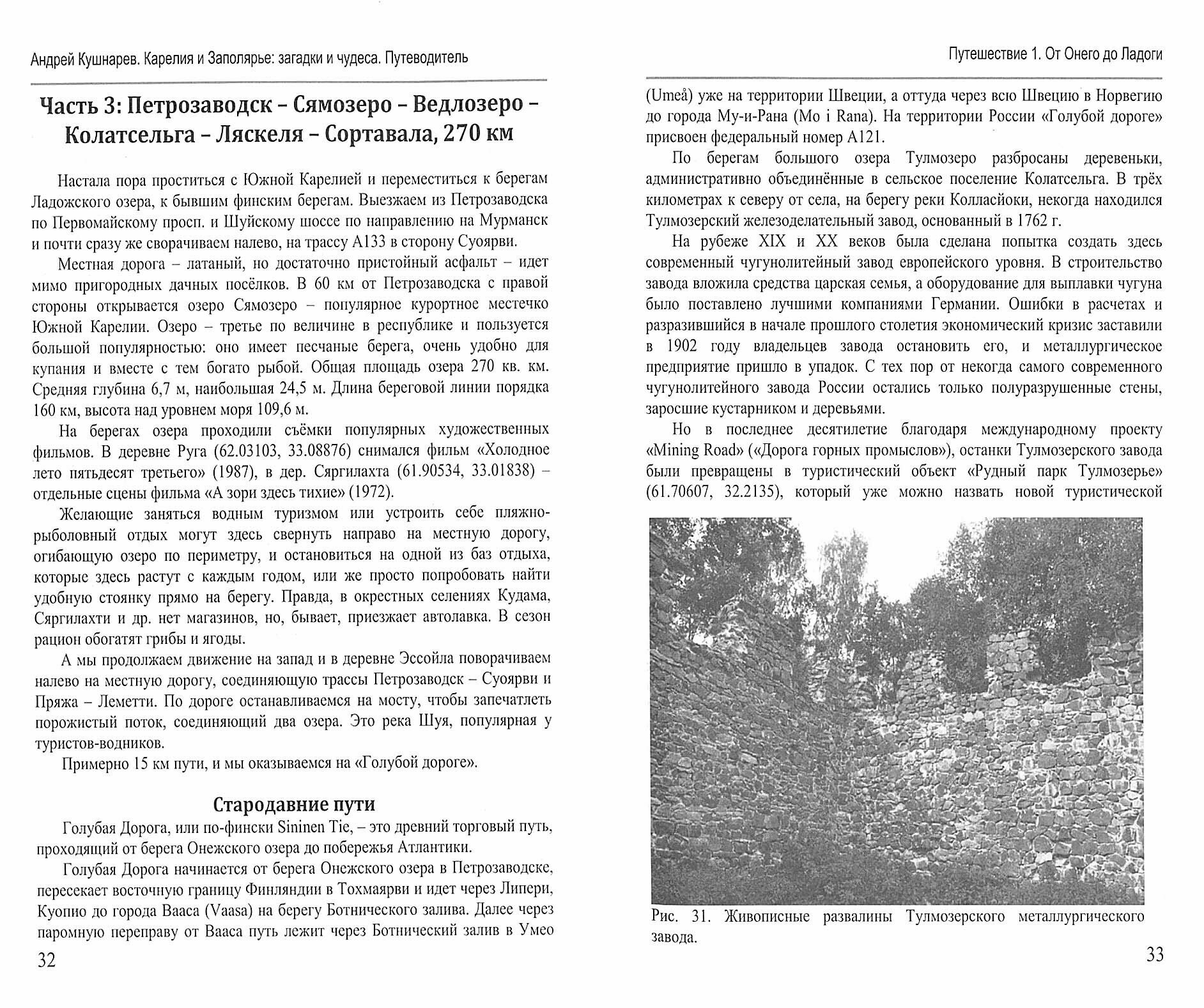 С большим интересом прочитала этот путеводитель, что называется, от корки до корки. Вроде, и оформление не особо качественное - обложка мягкая, шрифт мелковат, фото чёрно-белые (а в путеводителях фотографии - одно из самых важных составляющих), - но впечатление оставил очень приятное. Автор путешествует по Карелии и Заполярью на личном автомобиле и описывает интересные, с его точки зрения, места. Даёт привязки к GPS-координатам. Много внимания уделено старинным церквям, сохранившимся в северных деревнях, истории храмов и монастырей и связанным с ними святым. Хотя я и далека от религии, всё равно с интересом прочитала. Также рассказывается о природных достопримечательностях - водопадах, озёрах, реках, возвышенностях. Есть и немного истории - совсем немного, но для первого знакомства с этими удивительными местами вполне хватает. Вроде бы не "цветасто" расписано, но, пока читала, постоянно возникало желание бросить все дела и рвануть в те края, чтобы увидеть эти красоты воочию.