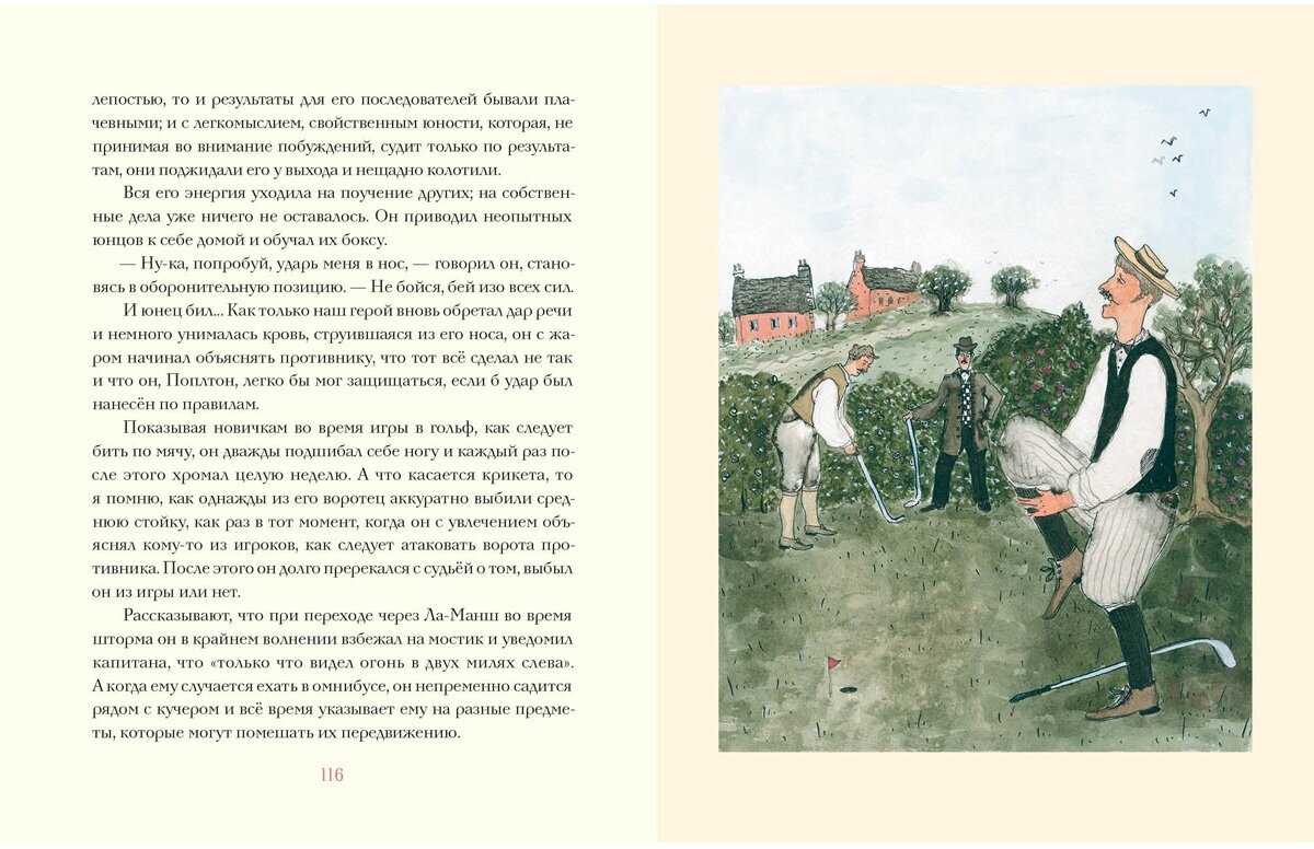 Ироничные, очень английские тексты, ранее входившие в разные сборники. Подарок для истинных ценителей. Сдержанные иллюстрации очень подходят тону рассказчика. Так сложилось, что Джерома знают в основном благодаря путешествию по Темзе. Настало время других удивительных историй. -