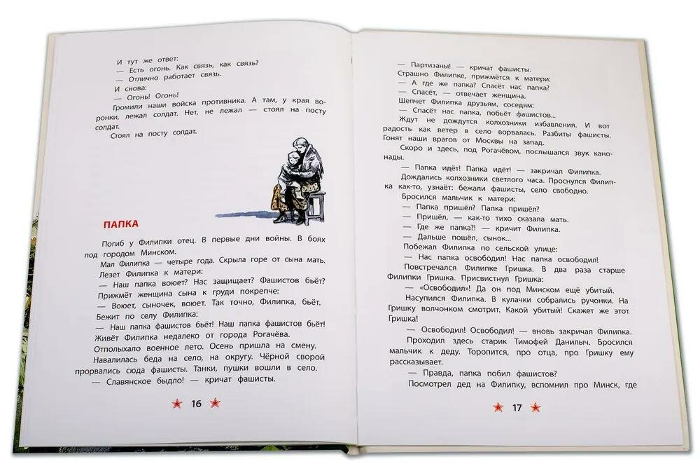 Очень интересная серия книг. Мы их носили в школу и учитель читала на открытом уроке посвящён Дню победы! Интересно расположено содержание, на заднем переплёте книжки, листать не надо. Рассказы интересные, красочные картинки. Листы плотные, белые, шрифт читается хорошо.