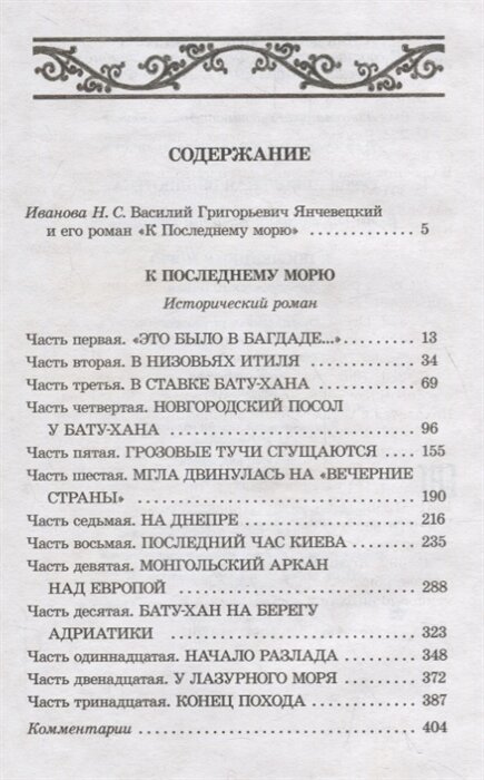Василий Григорьевич Янчевецкий (В. Ян, 1875-1954) создал историческую трилогию "Нашествие монголов", в которую вошли романы "Чингисхан", "Батый" и "К Последнему морю". В романе "К Последнему морю" писатель подводит исторический итог монголо-татарскому вторжению в Западную Европу в 1240-1243 гг. Автор рассказывает об осаде и разрушении Киева, городов Галицко-Волынского княжества, Польши, Чехии и Венгрии; о том, как орда Батыя, не встретив сильного сопротивления, разгромив в немногих сражениях армии западноевропейских королей, дошла до Адриатики и как внезапно хан повернул свои войска назад, в приволжские степи.