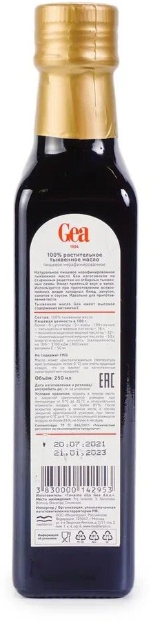 Масло тыквенное Gea 250мл