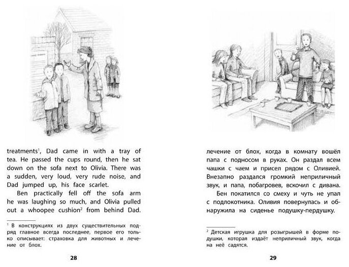 Очень довольна этой книгой - удобный, небольшой формат, белая бумага, достаточно крупный шрифт. И конечно, содержание - любимые истории Холли Вебб - о доброте, о Заботе и Ответственности за своего питомца. Дочка любит очень, как все ее знакомые подружки. Но и это не все. Английский текст на левых страницах, похоже, оригинальный, не адаптированный. Это очень здорово, но сложновато, даже для изучающих язык.