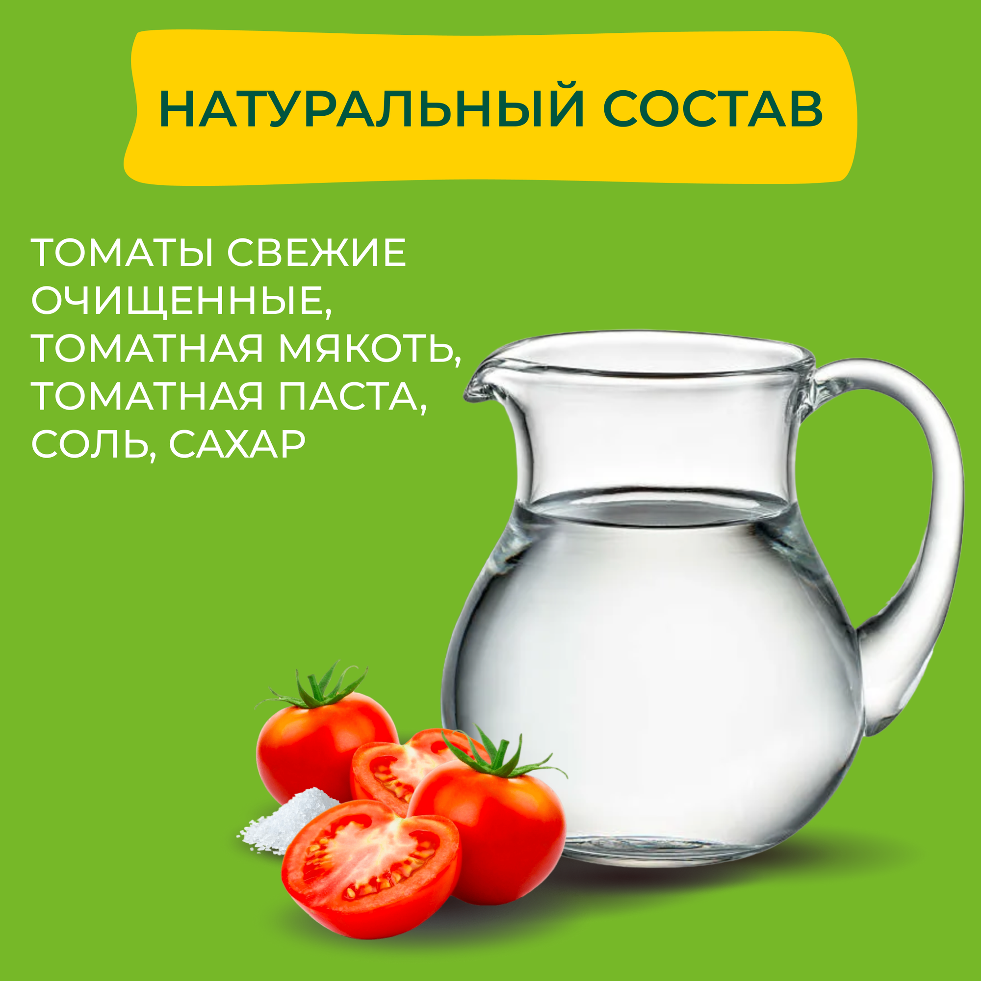 | Состав | Томаты свежие очищенные, томатная мякоть, сахар, соль. |