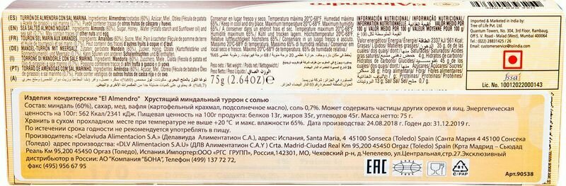 Туррон El Almendro Хрустящий миндальный с морской солью 75г DLV Alimentacion, S.A. Ctra