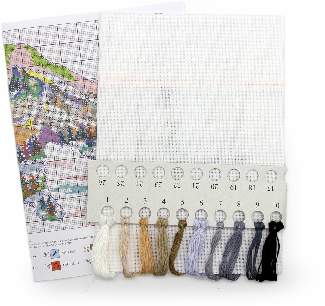 | В набор входит | хлопковая канва Zweigart Aida 16 ct белого цвета, хлопковое мулине (10 цветов), игла, цветная символьная символьная схема, инструкция по вышиванию. |