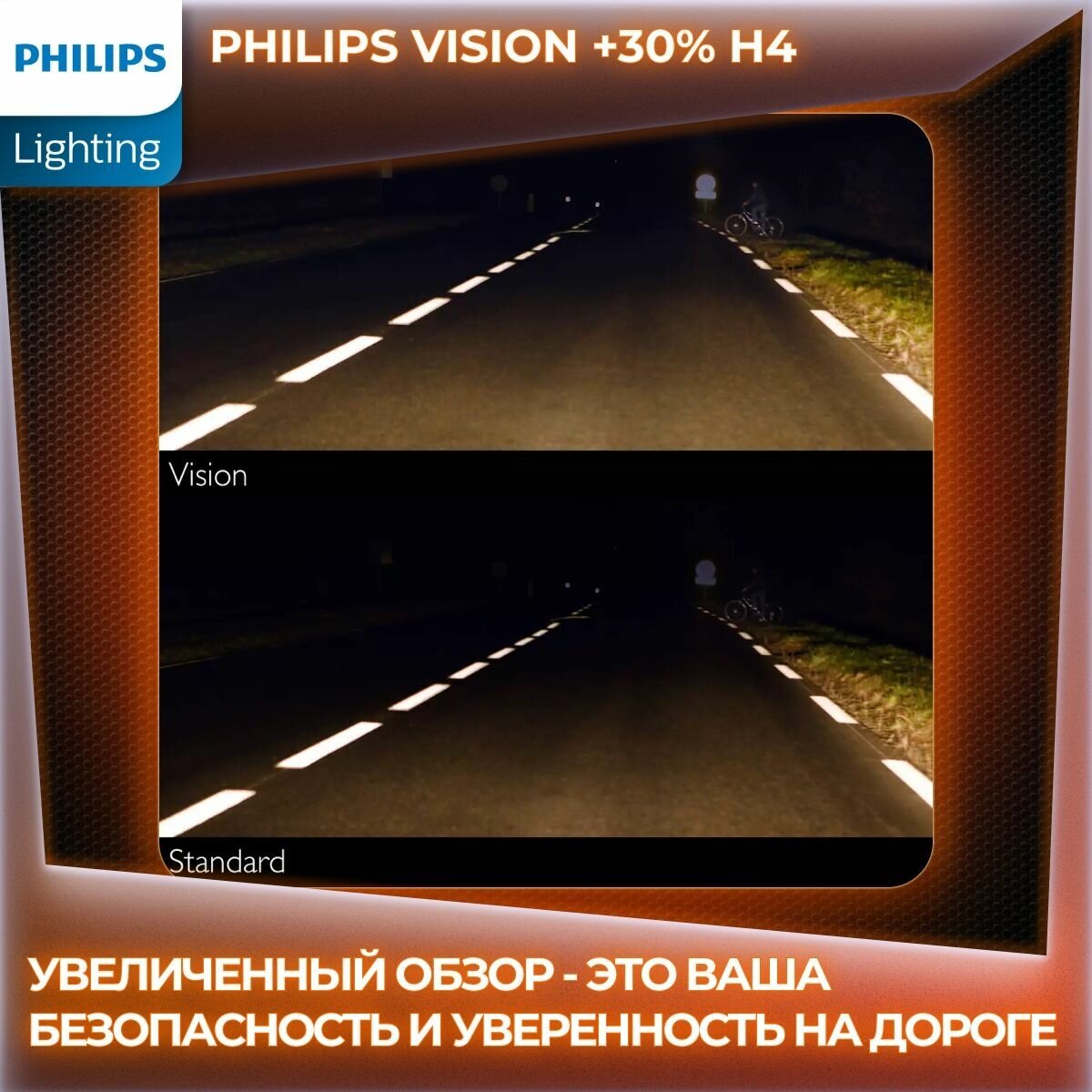 Свет лампы Vision распространяется на 10 м дальше, чем у обычной лампы
