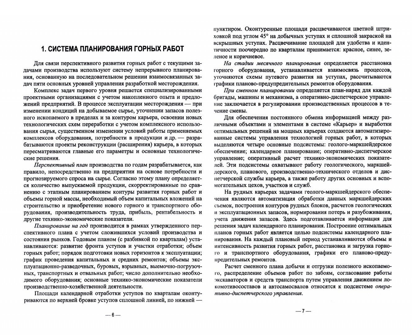 Описаны современные методы планирования горными работами при открытой разработке месторождений. Рассмотрена система планирования горных работ карьеров, содержание плана горных работ, экономические показатели планирования, подготовка, рассмотрение и согласование планов развития горных работ, средства автоматизированного планирования открытых горных работ, понятие о режиме горных работ, стадии развития проекта карьера. Учебное пособие предназначено для студентов специальности "Горное дело" (специализация "Открытые горные работы"), аспирантов научной специальности "Теоретические основы проектирования горнотехнических систем" и слушателей центра ДПО Горного университета.