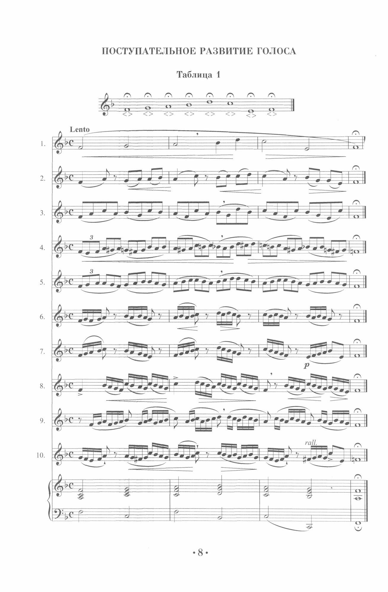 Настоящее издание представляет собой методику постановки и развития голоса, построенную на постепенном техническом усложнении вокализов. Вокальные упражнения предвосхищает предисловие, в котором Чинти-Даморо призывает соблюдать ряд рекомендаций для эффективного обучения молодого вокалиста.