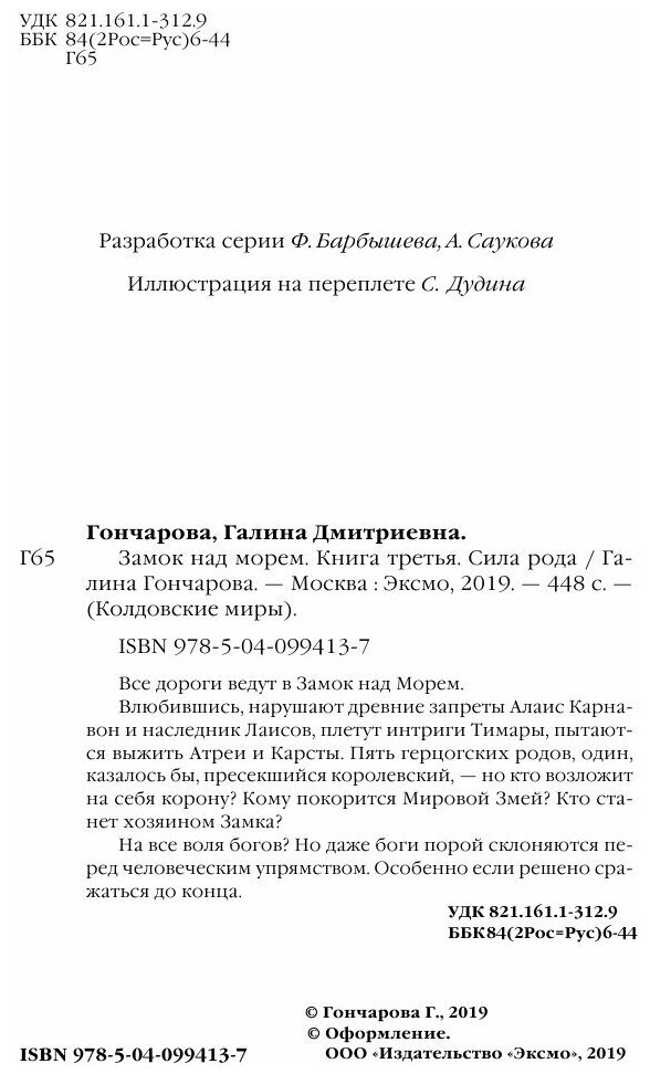 Сервис сравнения цен СкидкаГИД предлагает сравнить цены на товар «Книга: Замок над морем. Книга 3. Сила рода (Галина Дмитриевна Гончарова); Эксмо, 2018»