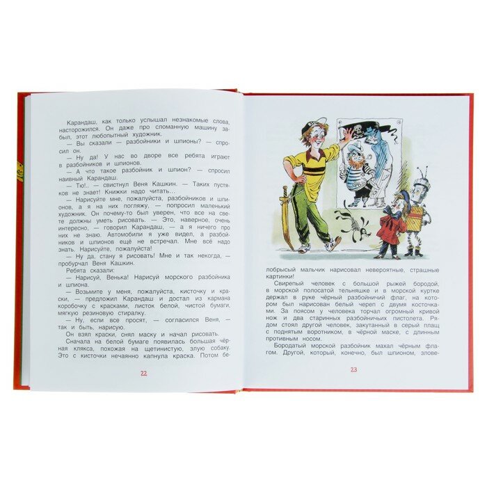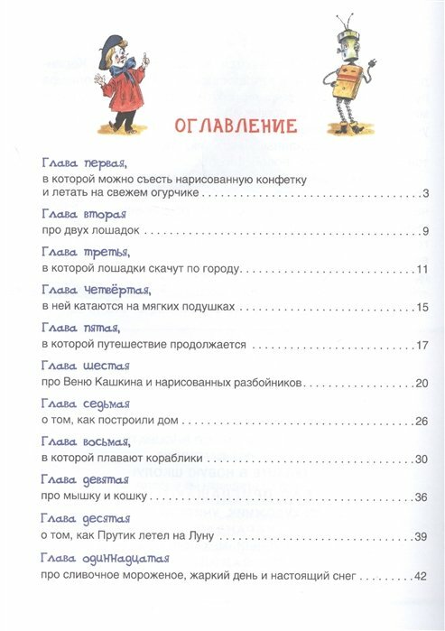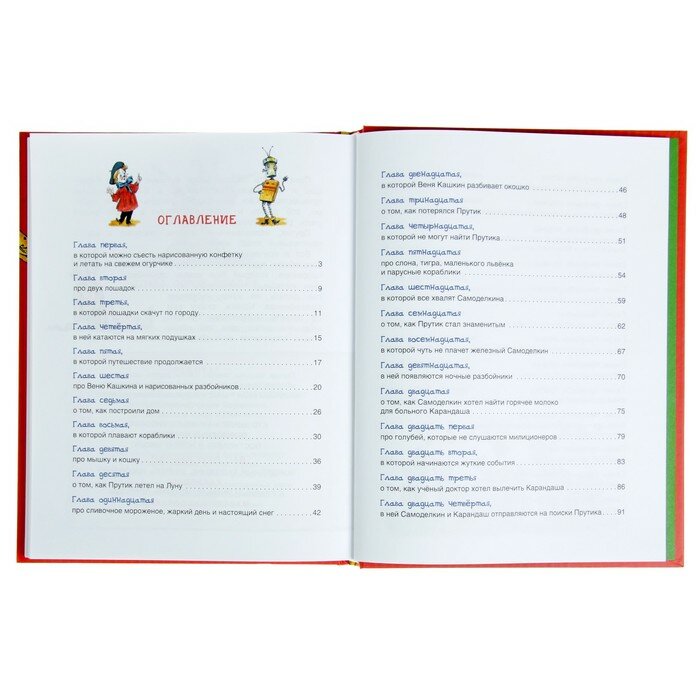 Книга расскажет о приключениях двух маленьких человечков — художнике Карандаше и мастере Самоделкине. Рисунки Карандаша мгновенно оживают, а Самоделкин может смастерить любой, даже самый сложный механизм! Вместе веселые человечки изобретут необыкновенный автомобиль, построят дом, воспитают нарисованного мальчика и одолеют злых разбойников.