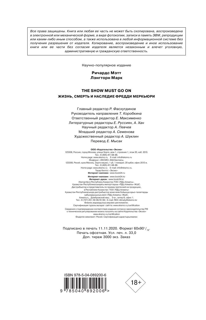 На сегодняшний день товар «Книга: The Show Must Go On. Жизнь смерть и наследние Фредди Меркьюри (Лэнгторн Марк (соавтор), Мысак Е. (переводчик), Ричардс Мэтт); Эксмо, 2018» можно купить с кешбеком в 3 магазинах: book24, Яндекс.Маркет, Буквоед