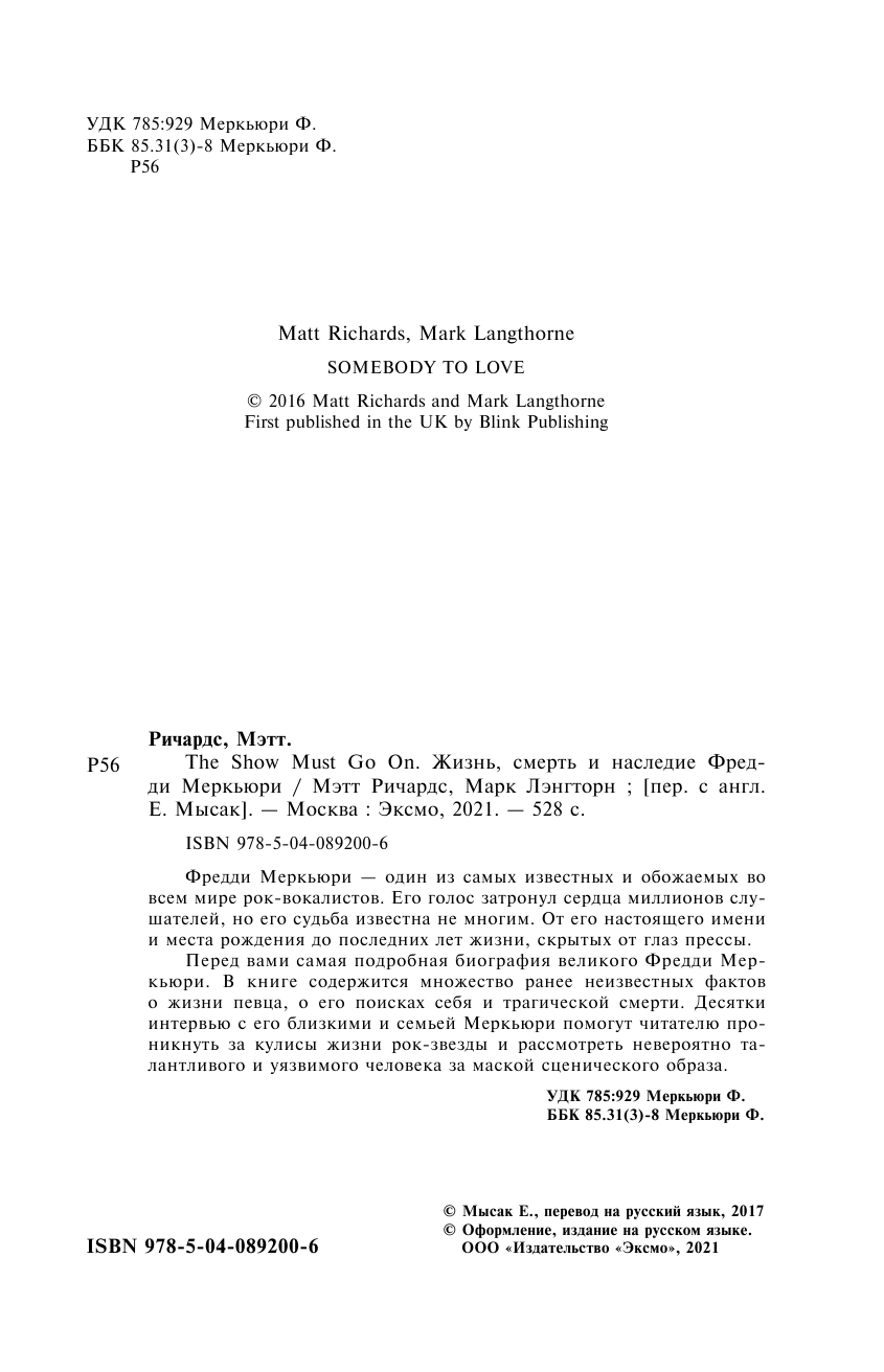 The Show Must Go On. Жизнь смерть и наследние Фредди Меркьюри (Лэнгторн Марк (соавтор), Мысак Е. (переводчик), Ричардс Мэтт); Эксмо, 2018