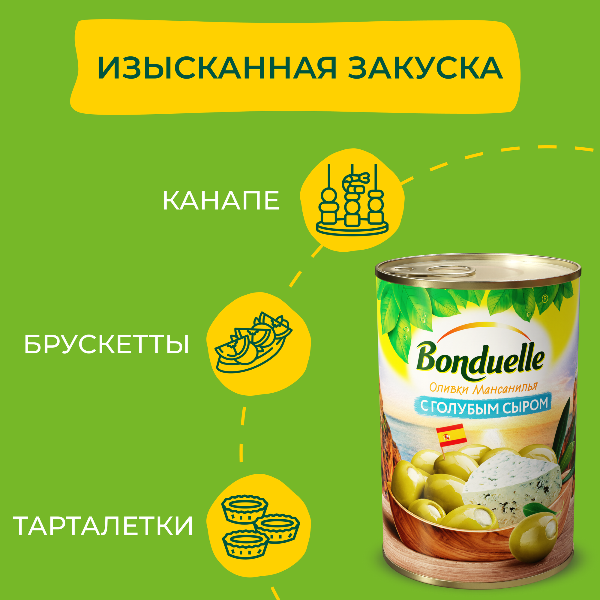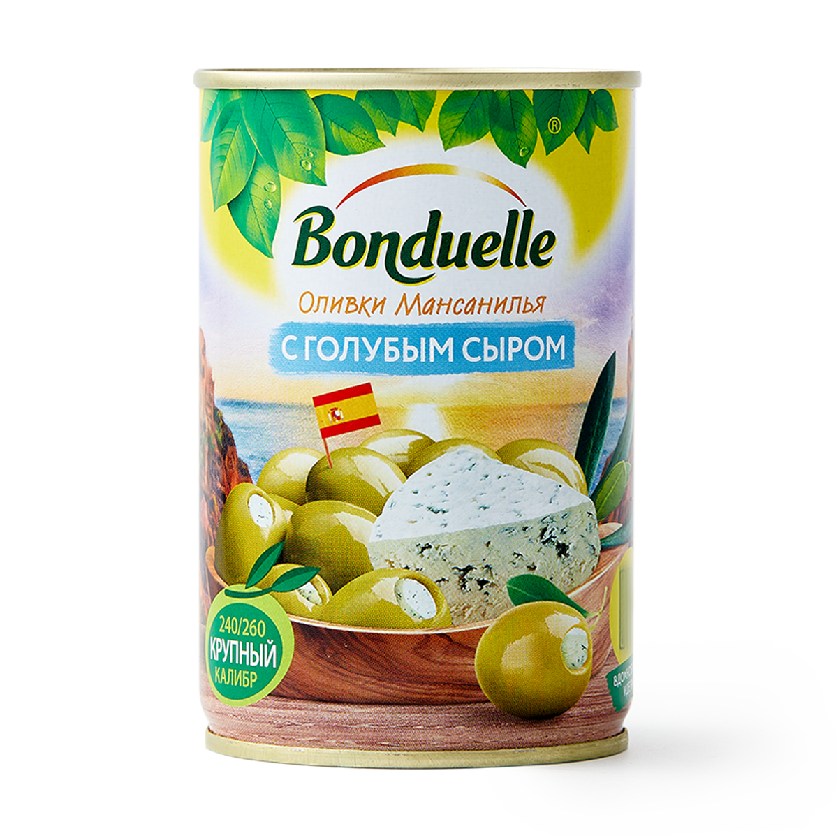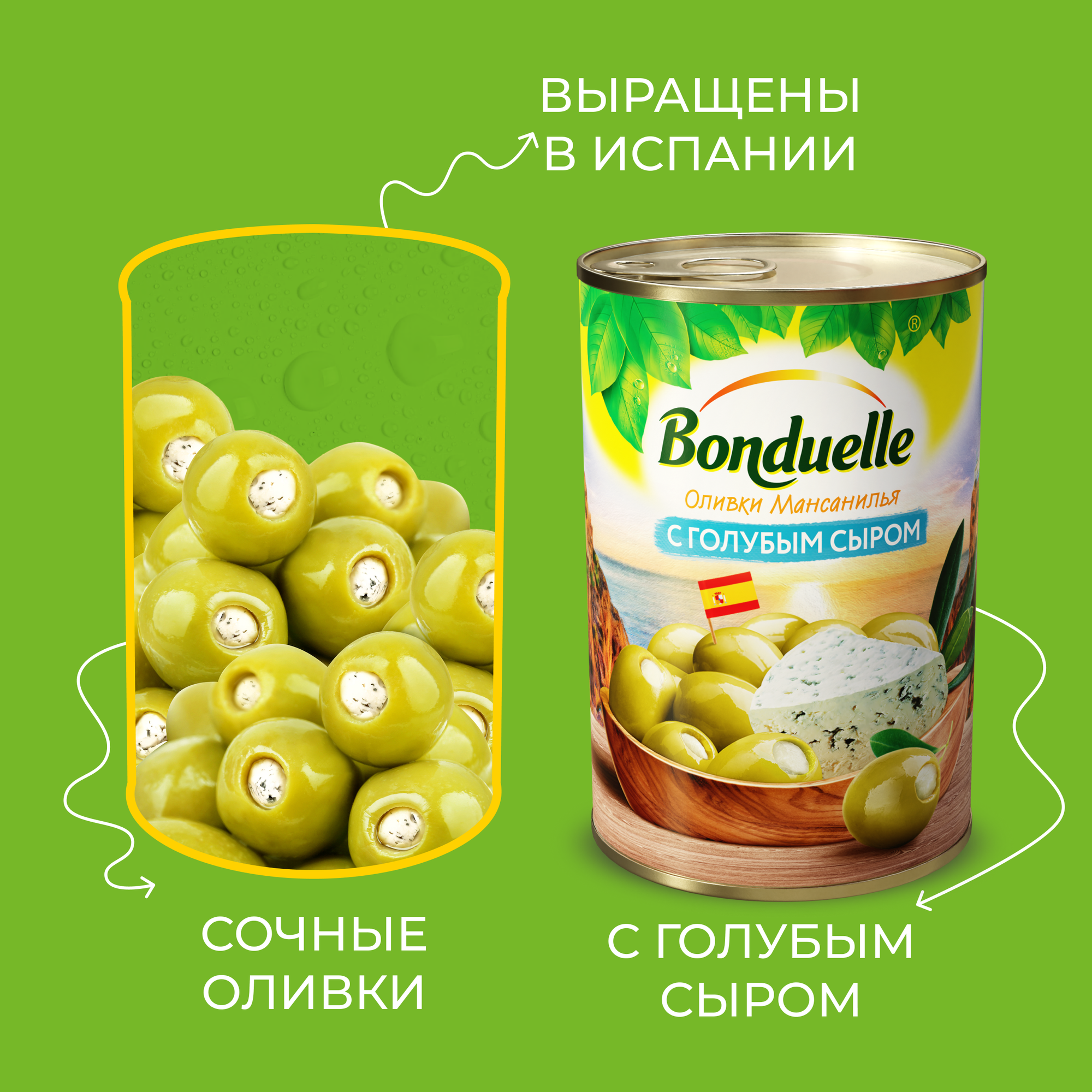 Оливки Bonduelle Мансанилья с голубым сыром 314мл