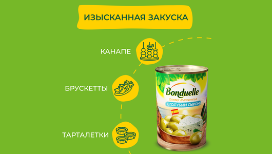Сервис сравнения цен СкидкаГИД предлагает сравнить цены на товар «Оливки Bonduelle Мансанилья с голубым сыром 314мл»