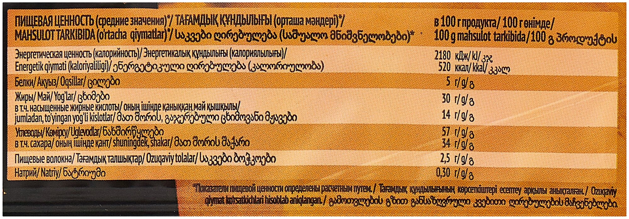 | Энергетическая ценность (ккал на 100 г) | 520 |