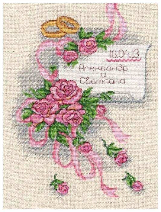 Вышивание — кропотливый труд, поэтому даже опытные мастерицы пользуются готовыми наборами: качественный комплект сильно облегчает работу и позволяет подобрать материалы в нужной цветовой гамме.Набор для вышивания «Свадебная метрика» - это удобный комплект материалов, инструментов и схем, с которым можно создать законченную композицию. Красивый и стильный рисунок-вышивка, выглядит оригинально и всегда модно. В наборе для вышивания «Свадебная метрика» есть все необходимое для создания собственного чуда. Работа, сделанная своими руками, создаст особый уют и атмосферу в доме и долгие годы будет радовать вас и ваших близких.В набор входят:- Канва (хлопок 100 %);- Нитки мулине (хлопок 100 %);- Схема вышивки;- Игла;- Инструкция