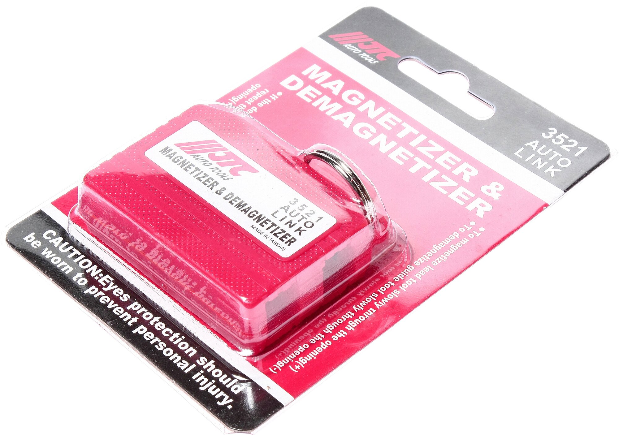 Намагничиватель-размагничиватель инструмента JTC - это компактное приспособление, которое пригодится в любой авто-, столярно-слесарной мастерской или же в быту. С помощью данного изделия можно быстро осуществить как намагничивание, так и размагничивание различного инструмента (например, отверток) и крепежа (саморезы, гайки, болты, шайбы)Преимущества Используется для намагничивания/размагничивания инструмента и отдельных деталей: саморезов, гаек, болтов, шайб Применение: для намагничивания провести инструментом вдоль нижнего квадратного отверстия со знаком (+) Для размагничивания провести инструментом вдоль верхнего отверстия со знаком (-) Если инструмент не полностью размагнитился, что зависит от качества стали и диаметра, то необходимо повторить процедуру Габаритные размеры: 130/90/20 мм Вес: 65 гр