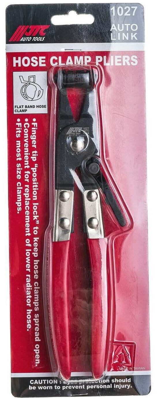 Клещи JTC- предназначены для демонтажа хомутов. Оснащен ручным фиксатором положения, что позволяет держать клещи открытыми. Удобны для снятия нижнего патрубка радиатора. Подходит для большинства типовых хомутов. Назначение JTC-: Для снятия хомутов. Характеристики JTC-: Упаковка: блистер Габаритные размеры: 285х100х25 мм. (ДхШхВ) Вес: 0,265 кг.
