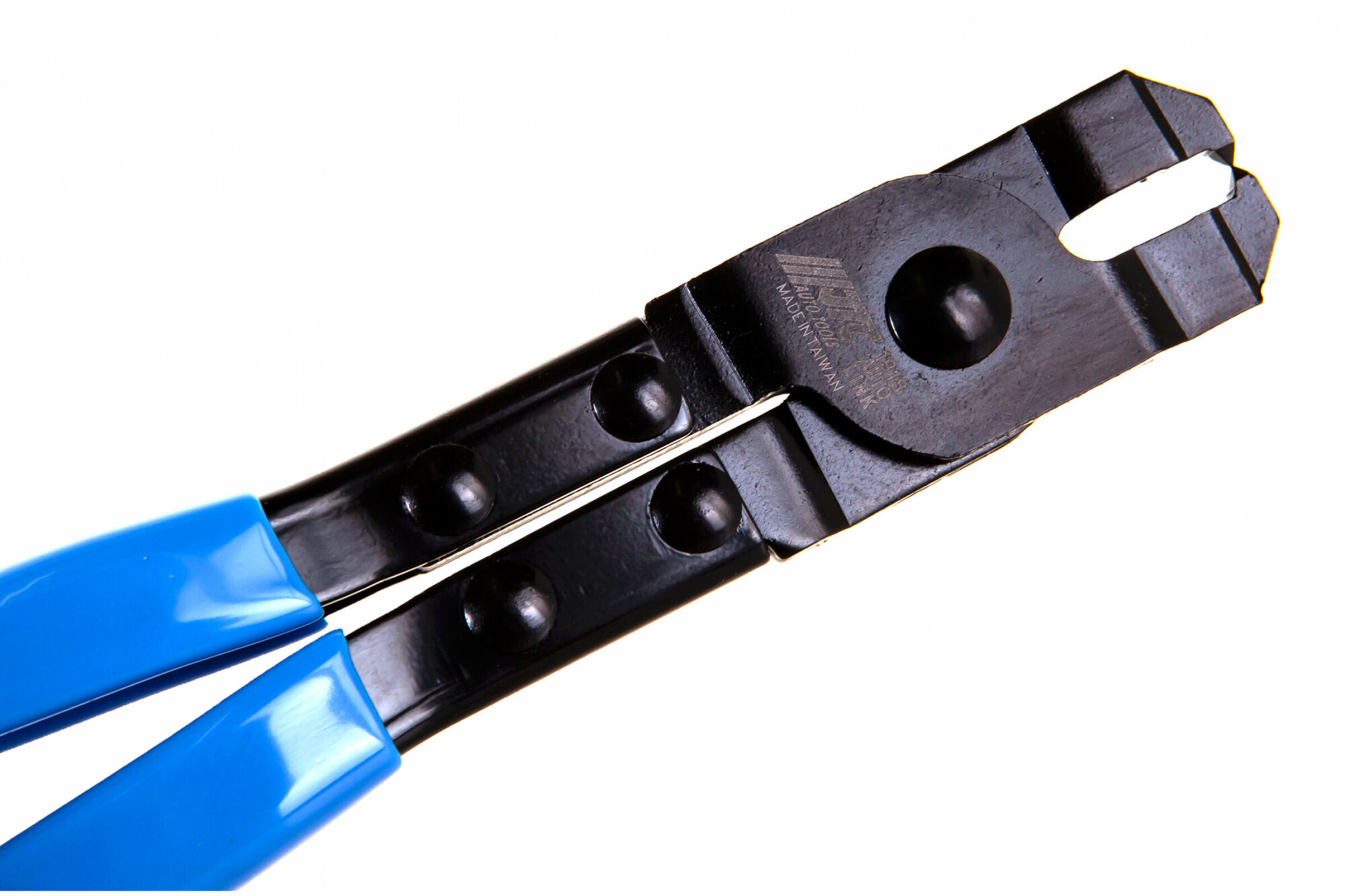 Клещи для хомутов ШРУСа JTC JTC- используются для снятия хомутов без проушин. Эти инструменты применяются для установки хомутов без проушин, включая снятие хомутов ШРУСаПримущества Небольшой размер и малый вес обеспечивают удобство использования, хранения и транспортировки. Губки специальной формы надёжно захватывают хомуты без проушин при монтаже и демонтаже. Эргономичные рукоятки с широкой поверхностью хвата для удобного проведения работ. Высокая прочность, износостойкость и долгий срок службы
