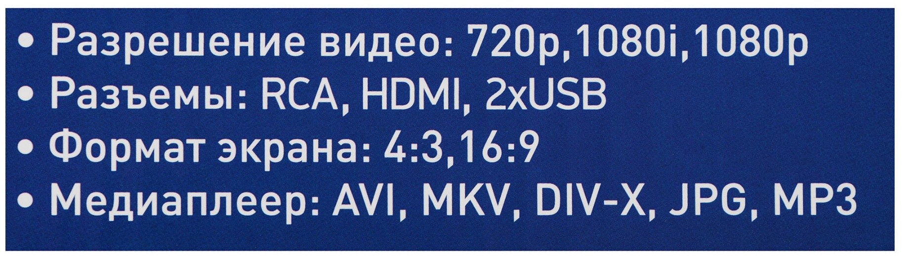 | Разъемы | вход антенны, HDMI, композитный (RCA), стерео аудио |