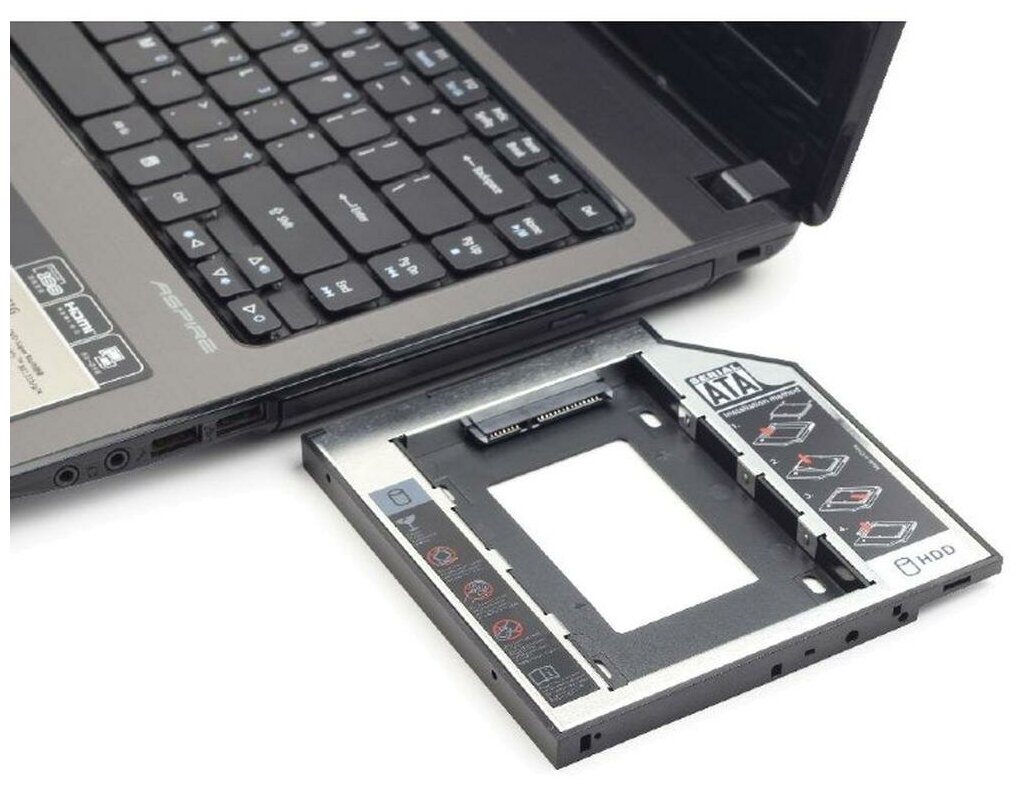 Хороший, недорогой переходник. Естественно, установил его в ноут вместо CD привода. Использую для старого жесткого диска, а на его место поставил SSD. Все закреплено прочно, родная планка стоит на месте. Ноутбук просто летает. Использую уже почти год, проблем не возникало.