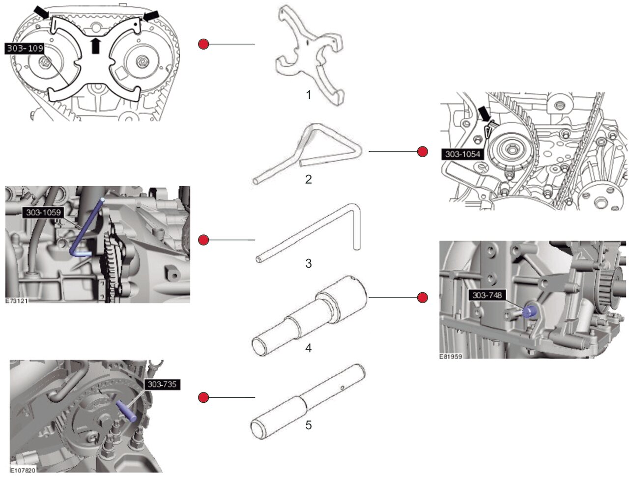 Фиксатор предназначен для установки и снятия распредвала или различных его элементов. Он применяется для проверки и регулировки фаз ГРМ. Комплектация:Фиксатор фазорегуляторов. Оригинальный номер: 303-1097. Фиксатор натяжителя ремня ГРМ. Оригинальный номер: 303-1054. Стопор маховика. Оригинальный номер: 303-1059. Фиксатор коленвала. Оригинальный номер: 303-748 (резьба М10). Фиксатор распредвала. Оригинальный номер: 303-735.
