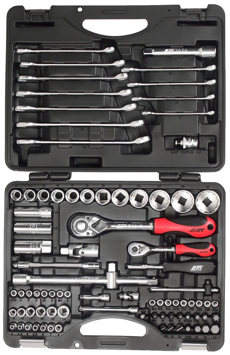 Набор инструментов 1/4, 1/2 85шт /1/3 JTC- имеет в своем составе все необходимые приспособления для работы с поврежденными крепежными элементами. Все компоненты изготовлены из прочной стали и имеют повышенный запас прочности. Головки крепко врезаются в сорванные грани болтов или гаек и легко извлекают их. Все компоненты удобно располагаются в пластиковом кейсе с крышкой на замках.
