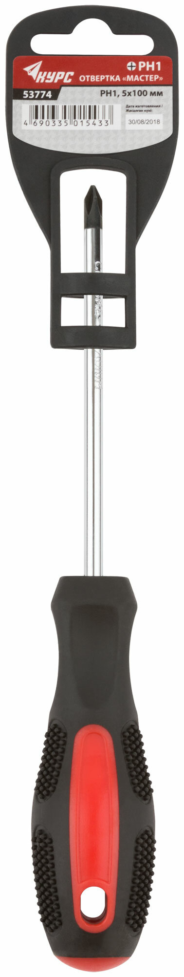 Отвертка Курс Мастер , CrV сталь, прорезиненная ручка 5х100 мм РН1