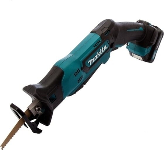 Аккумуляторная сабельная пила Makita может применяться для проведения домашних или строительных работ. Она позволит проводить профессиональный распил материалов из древесины, гипсокартона, листового металла и других. Скорость оборотов регулируется большим курковым переключателем, не вызывающим усталость пальцев даже при длительной работе. Прибор имеет компактные габариты и небольшой вес, благодаря чему он маневренный и прост в использовании.