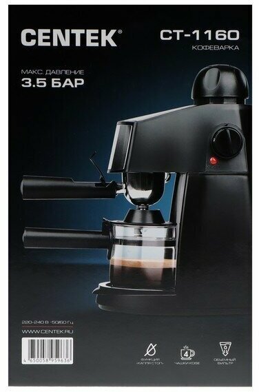 Если вы хотите начинать утро со свежей и вкусной чашки кофе, то обратите внимание на кофеварку CENTEK . Данная модель обладает всеми необходимыми функциями для приготовления вашего фирменного напитка. Кофеварка позволит приготовить как настоящий капучино, так и классический эспрессо. Объема кофейного стакана будет достаточно для приготовления чашечки вкуснейшего напитка.