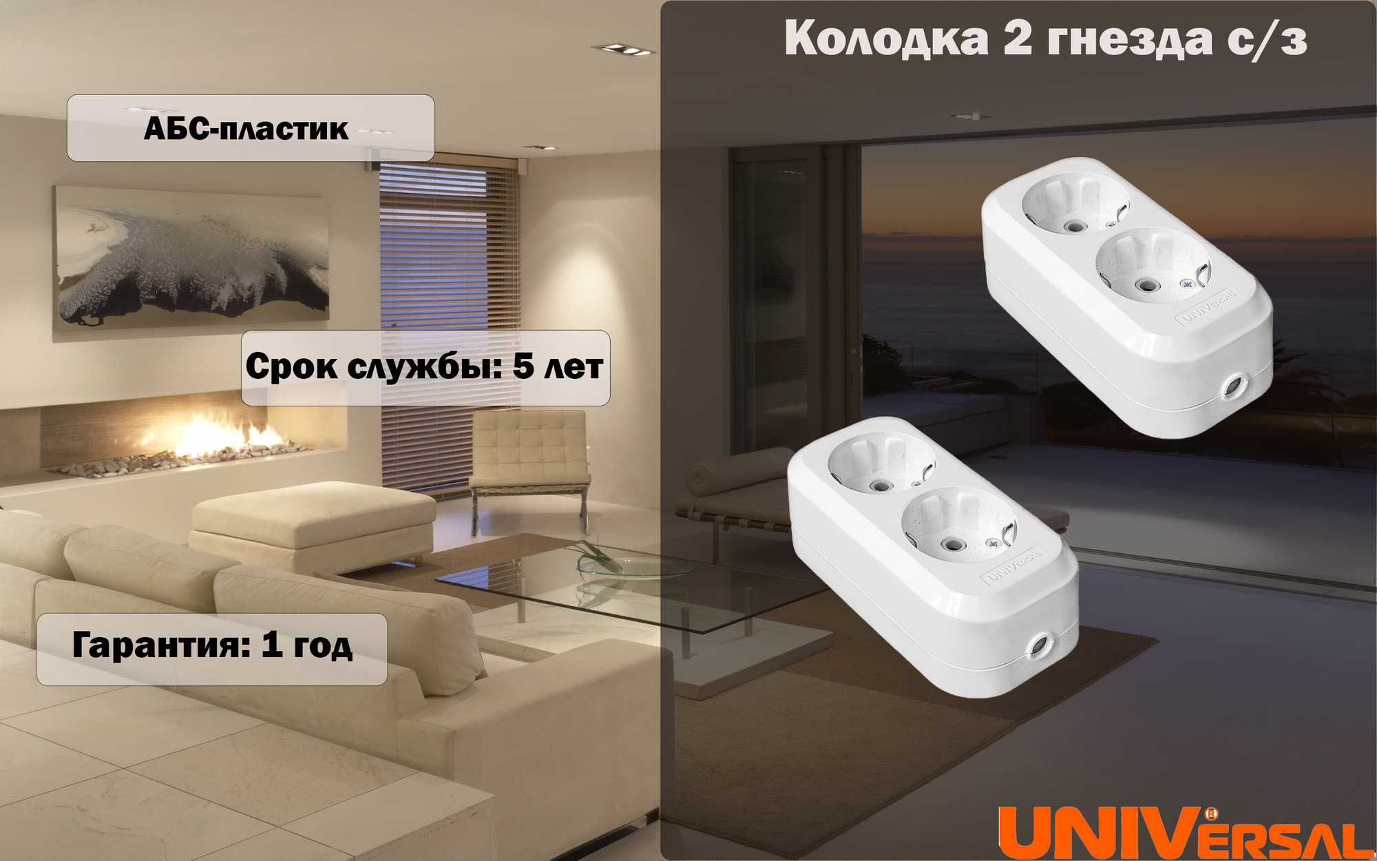 Колодка UNIVersal 2гнезда с заземлением