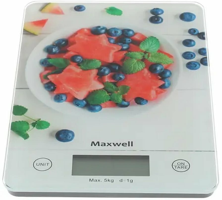Кухонные весы MAXWELL MC – настольная модель, выполненная в белом цвете с изображением ягод, отличается небольшими габаритами 135x200 мм. Корпус изготовлен из прочного пластика, а платформа – из закаленного стекла, за которыми легко ухаживать.