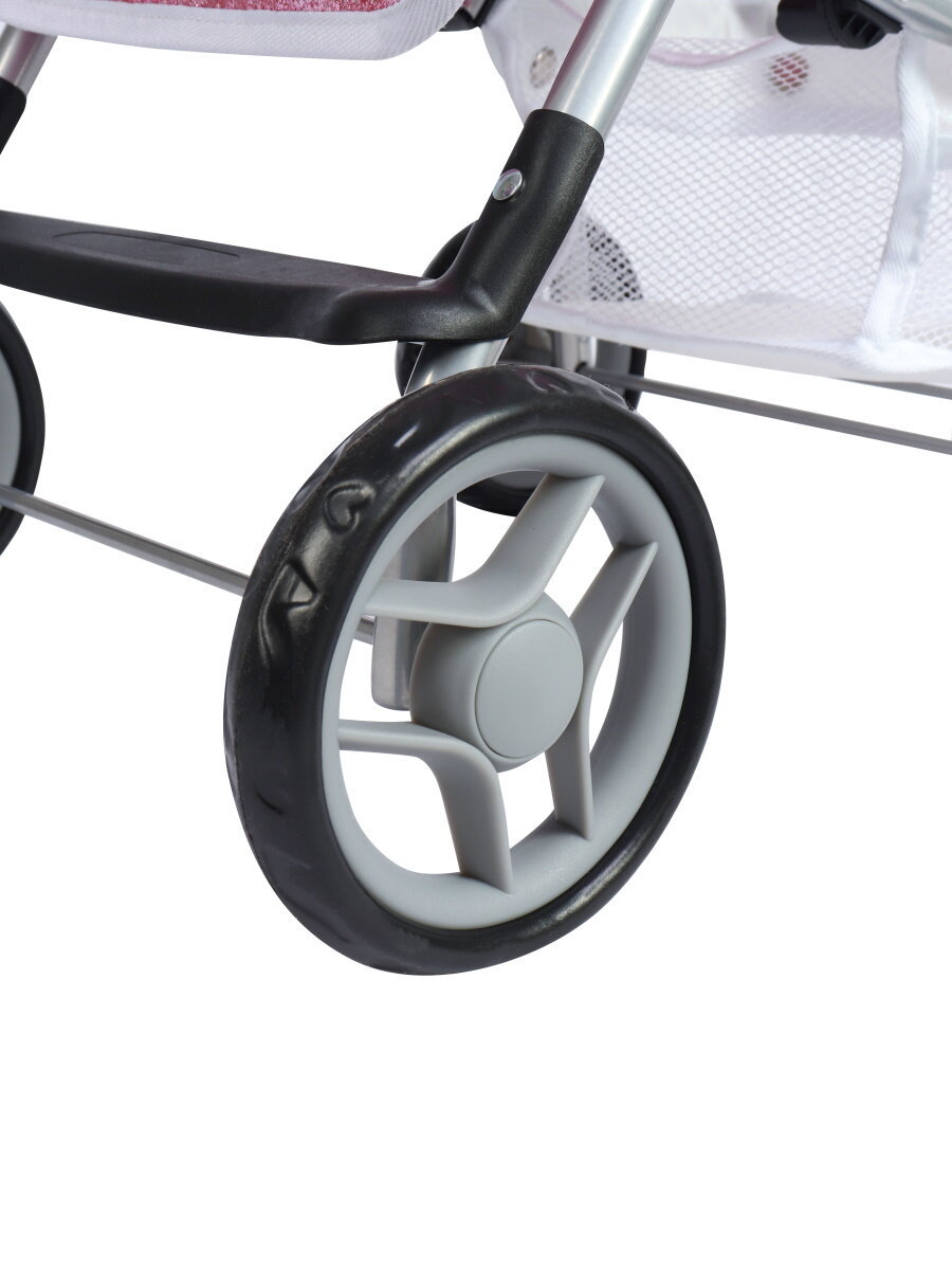 Эта прогулочная коляска очень похожа на настоящую!Особенности:Ремень безопасности с перемычкой и пластиковой застежкой.Подножка.Складной тент.Спинка регулируется по высоте от сидячего положения до полулежачего.В нижней части коляски закреплена сетка, в которую можно положить все самое необходимое.На ручках есть специальные кнопки, нажав которые, ручки можно повернуть в другое положение.Прочная металлическая рама и достаточно широкие колеса делают коляску очень устойчивой.