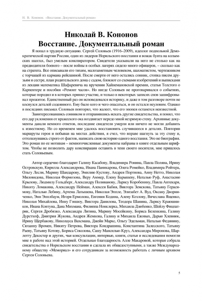 Война, плен, власовское движение, концлагерь, Холокост, послевоенная Бельгия, репатриация, ГУЛАГ, легендарное Норильское восстание - все это вместилось в жизнь одного конкретного человека, в которой общий опыт русской и европейской истории столкнулся с органической непереносимостью принуждения и несвободы. Документальный роман Николая В. Кононова "Восстание" выводит на сцену нового героя советской эпохи и исследует, как устроено само человеческое стремление к свободе - в подневольной стране, в XX веке.