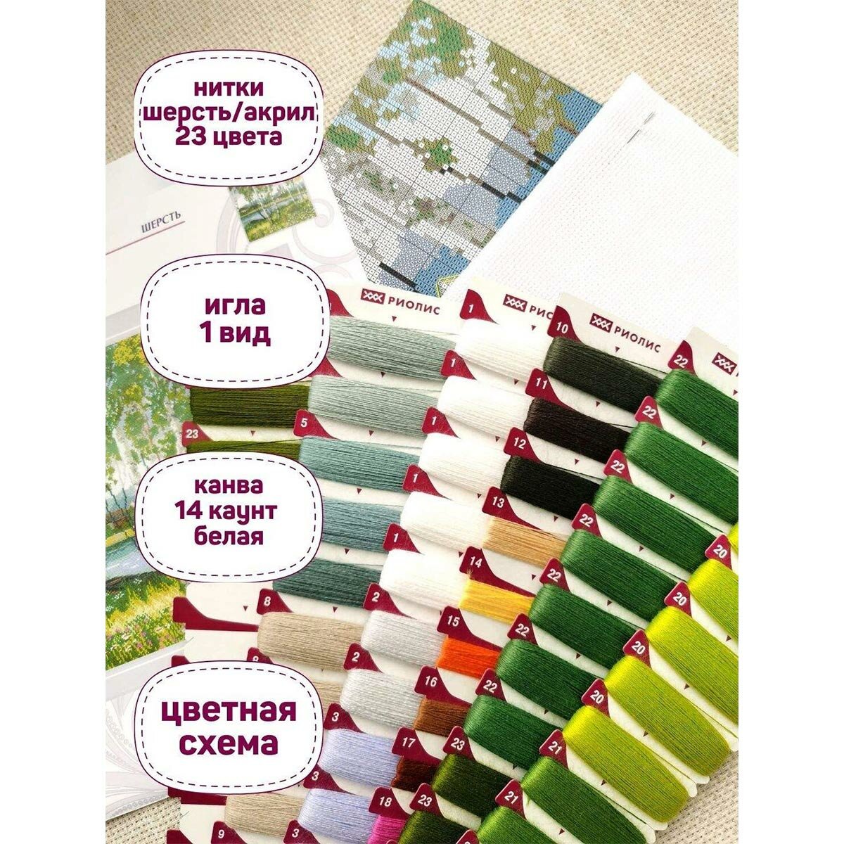 | В набор входит | Канва, нитки, игла, схема и инструкция |