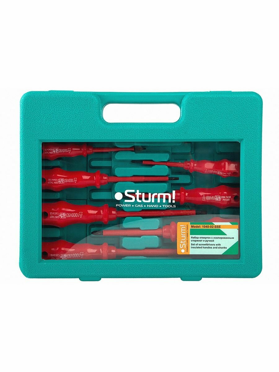 Набор отверток ДИЭЛЕКТРИЧЕСКИХ, 8 шт., ХРОМОВАНАДИЕВАЯ СТАЛЬ, кейс Sturm! для монтажа и демонтажа крепежных изделий при выполнении ремонтных работ.