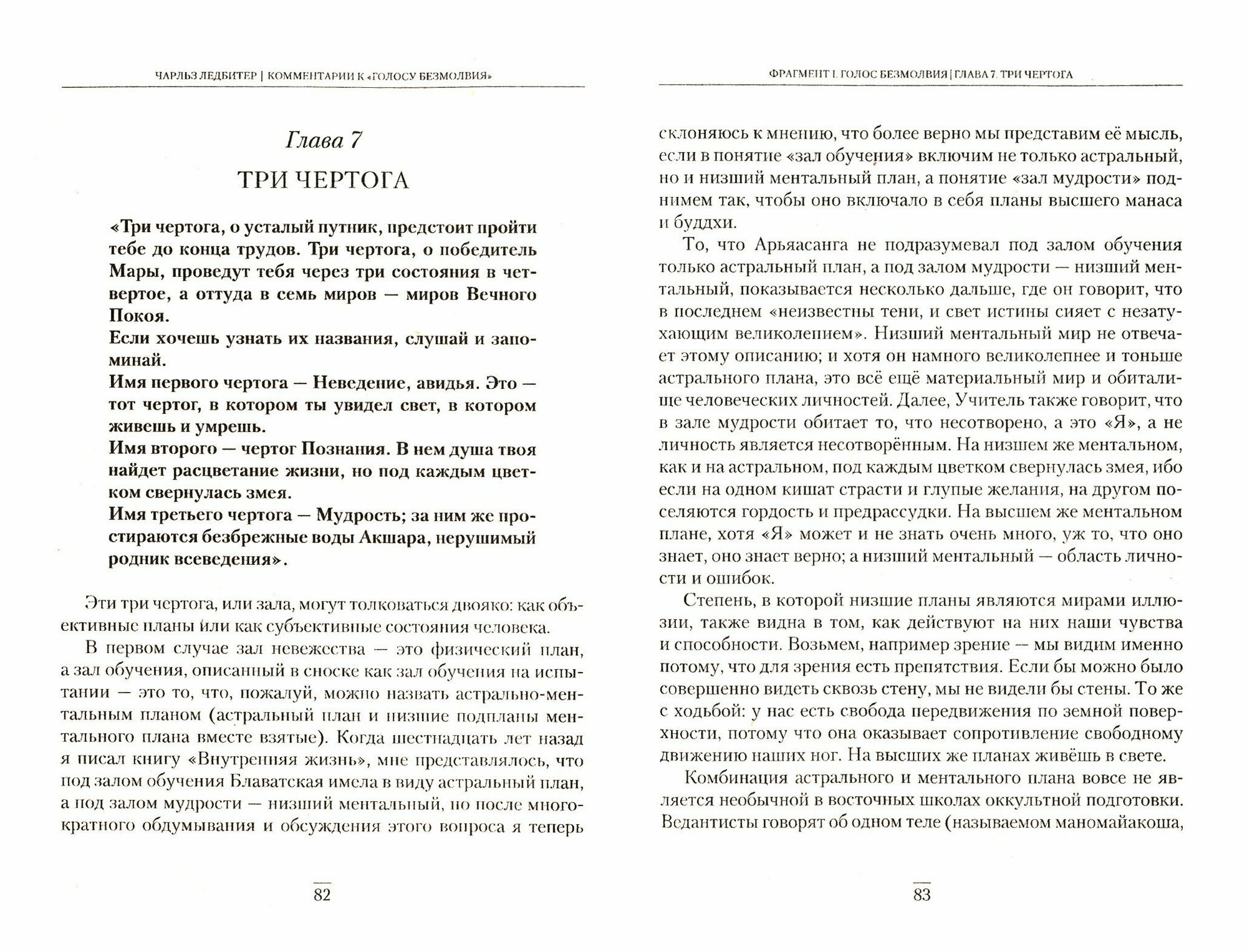 Данная работа представляет из себя комментарии известных оккультистов и теософов Чарльза Ледбитера (1854-1934) и Анни Безант (1847-1933) на книгу Е.П. Блаватской "Голос Безмолвия", вышедшей в 1889 году.