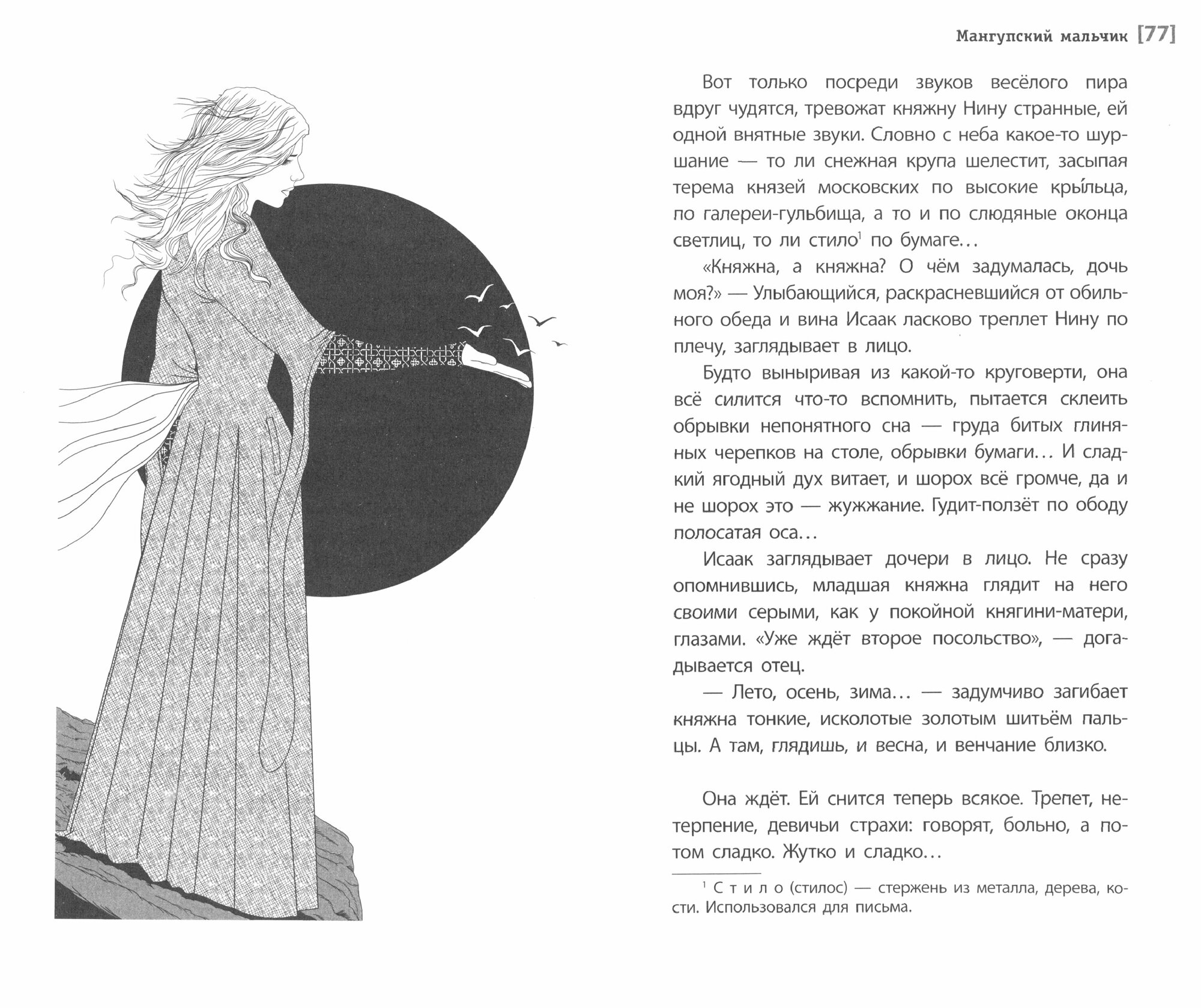 Где-то в горах по каменной стене Мангупской цитадели, бродит мальчик – княжеский сын. «Он и был миражом, облаком, грёзой. Он существовал в несуетном полузабытьи, он не вёл счёт времени, он был ветром, шумом дождя, стрёкотом цикад, воздухом, дрожащим от полуденного зноя, вечерней длинной тенью на древней стене, падающей с неба звездой...»