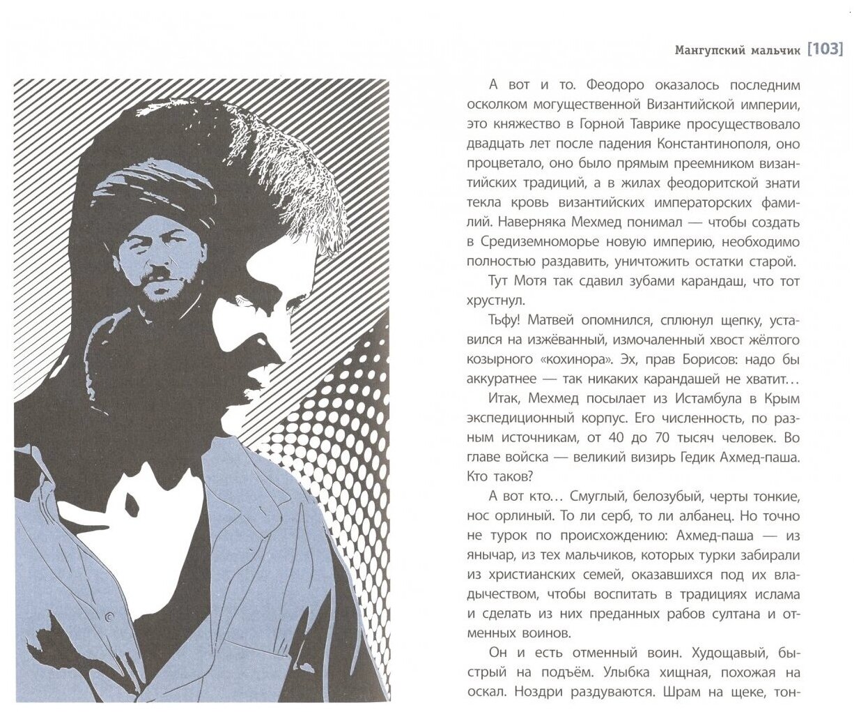 В общем классно получилось всё это переплетение реальности с историческими персонажами. Только поначалу было тяжело пробираться через все эти имена, названия и просто незнакомые слова. Заглянула на всякий случай в историческую справку о Мангупе, посмотрела фотографии тех мест и читать стало ещё интереснее.