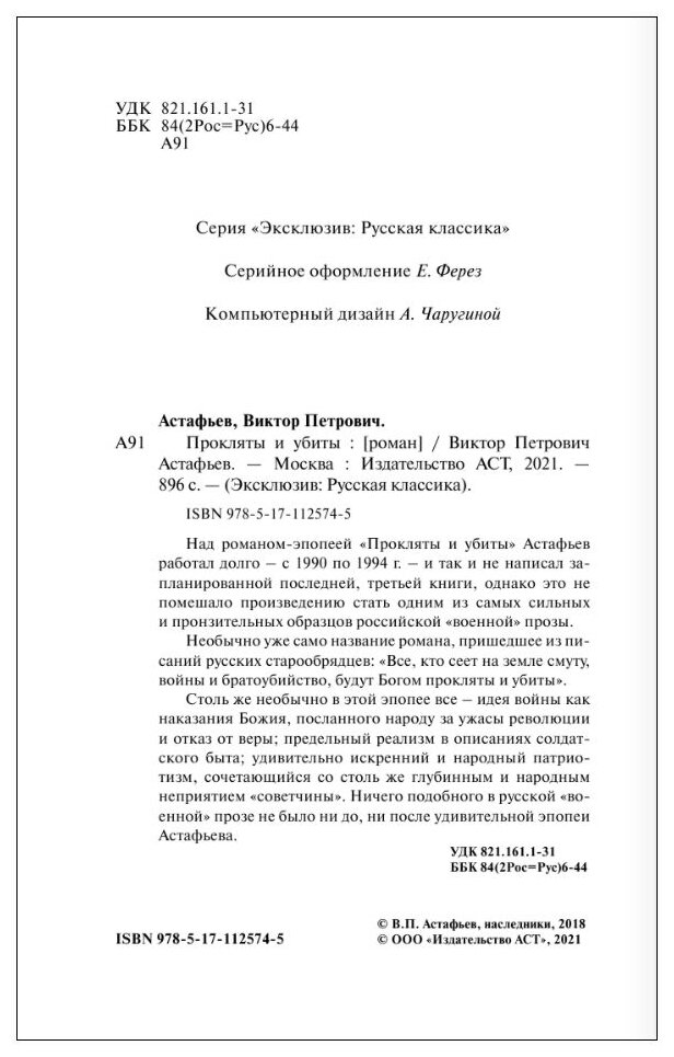 Книга: Прокляты и убиты (Астафьев Виктор Петрович); ООО "Издательство Астрель", 2018