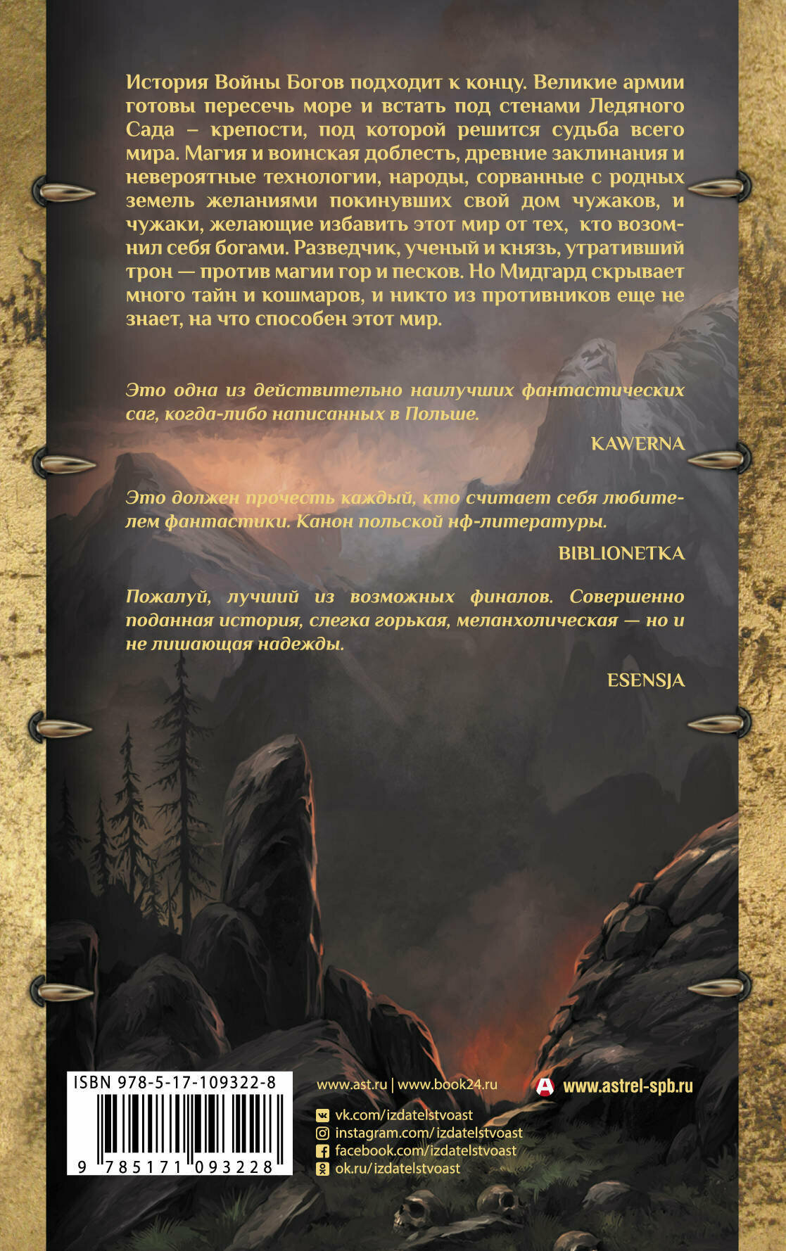 История Войны Богов подходит к концу. Великие армии готовы пересечь море и встать под стенами Ледяного Сада - крепости, под которой решится судьба всего мира. Магия и воинская доблесть, древние заклинания и невероятные технологии, народы, сорванные с родных земель желаниями покинувших свой дом чужаков, и чужаки, желающие избавить этот мир от тех, кто возомнил себя богами. Разведчик, ученый и князь, утративший трон - против магии гор и песков. Но Мидгард скрывает много тайн и кошмаров, и никто из противников еще не знает, на что способен этот мир.