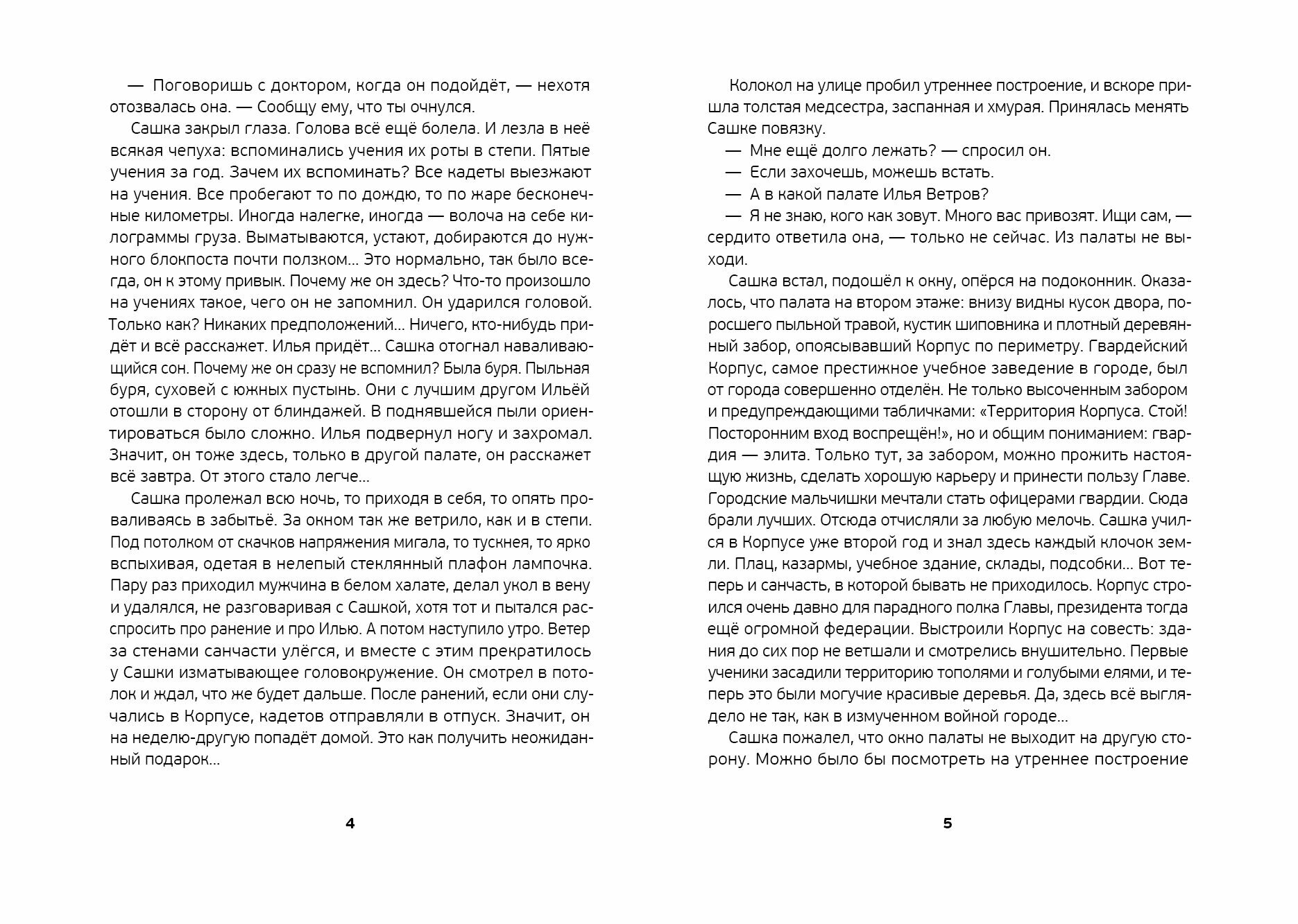 Альтернативный мир, похожий на наш на рубеже XX и XXI веков. Безымянный город, где разворачивается действие романа, мог бы располагаться где угодно на карте нашей страны, а атмосфера чем-то напоминает знакомое нам прошлое — но что за события в его истории опустошили целые кварталы и заставили обнести границу колючей проволокой? Мир после войны, показанный глазами воспитанника кадетского корпуса. Это отличное учебное заведение, где готовят настоящих офицеров, готовых умереть за свой лучший в мире Город и за его Главу. Но 15-летнего Сашку изгоняют из Корпуса по обвинению в предательстве. Чтобы зарабатывать хоть какие-то деньги, он становится штурмовиком-наемником, выполняющим самую грязную работу, — и ему открывается жестокая правда о Городе.